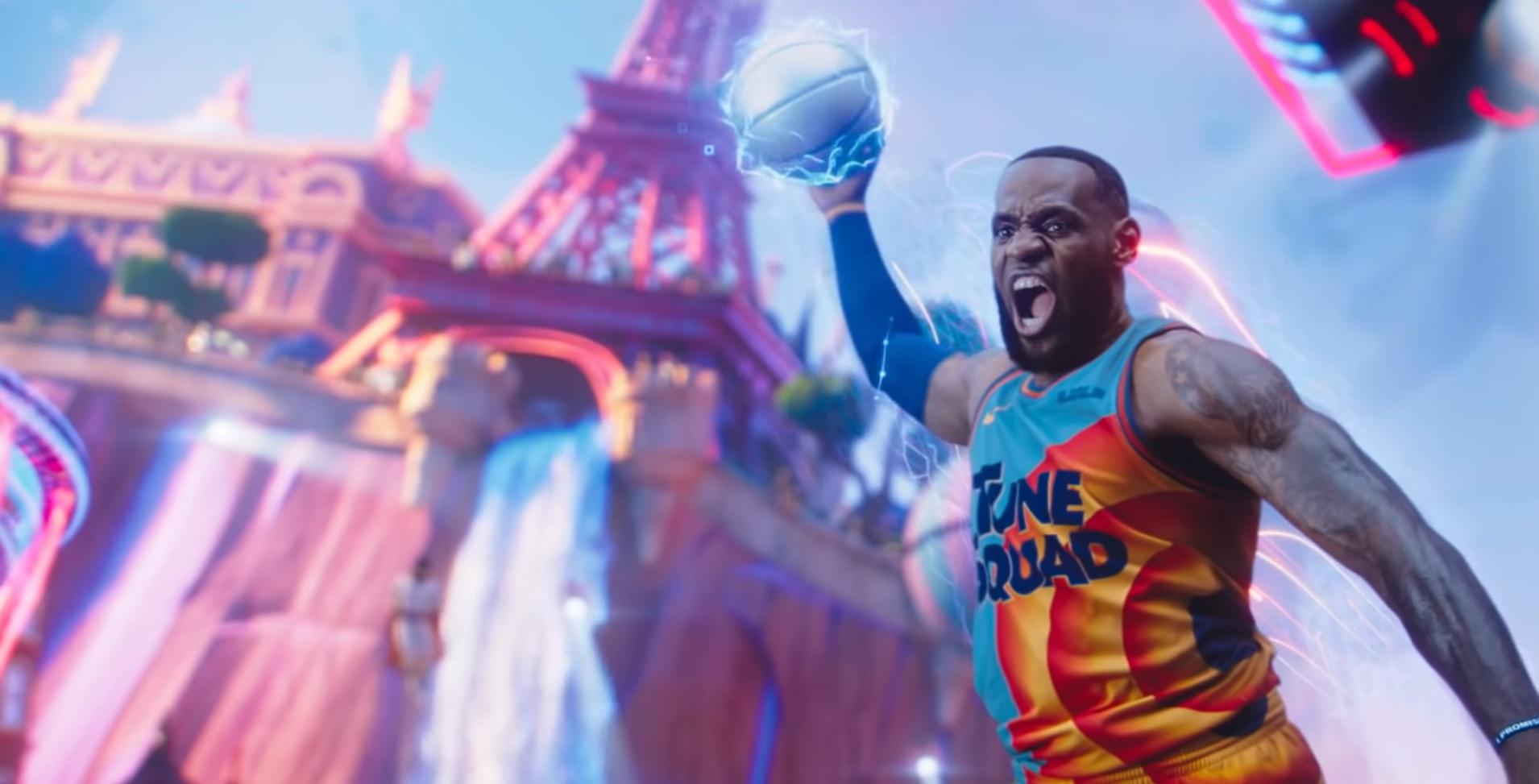 No longa o roteiro também pega alguns aspectos da vida pessoal de James, mas sua família no filme ganha nomes fictícios, como sua esposa Kamiyah James (Sonequa Martin-Green) e seus três filhos, Darius James (Ceyair J Wright), Dom James (Cedric Joe) e a pequena Xosha James (Harper Leigh Alexander). A história no geral conta a história de uma inteligência artificial Al G Rhythm (Don Cheadle) que sequestra LeBron James na tentativa de prendê-lo num mundo virtual chamado “ServiceVerse”, desta forma o vilão desafia o rei para uma partida de basquete, levando James a recrutar Pernalonga e seus amigos para ajuda-lo a ganhar a partida e sair desta enrascada.