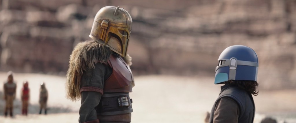 Talvez esta seja a temporada mais “aleatória” da série, não só por focar em uma narrativa mais cadenciada, mas por não ter pressa de chegar em um determinado ponto que acelere seu desenvolvimento. Quando encontramos Din e Grogu no episódio “Chapter 17: The Apostate” (3×01), estamos diante de uma jornada em busca purificação de um mandaloriano que largou suas raízes ao revelar seu rosto e agora busca a restauração da sua própria doutrina ao fazer uma busca pelas antigas águas purificadoras de Mandalore, seu planeta natal.