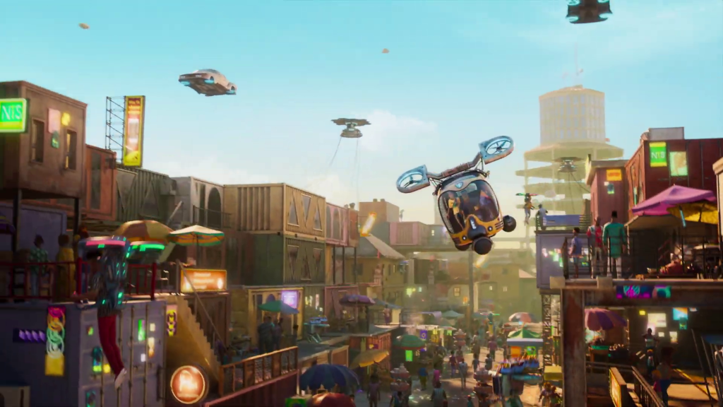 Cada episódio da animação corresponde a um personagem, é onde tudo é aprofundado e até os vilões ganham camadas. O piloto “Iwájú” (1×01) começa no aniversário de Tola Martins, que tenda agradar o pai de todas as maneiras, mas para Tunde Martins (Dayo Okeniyi) o trabalho sempre vem acima de tudo, até mesmo de passar um tempo com a filha. É a partir deste ponto que somos apresentados a um mundo com carros voadores, hologramas, armas energizadas e vários utensílios futuristas que dão o tom da aventura.