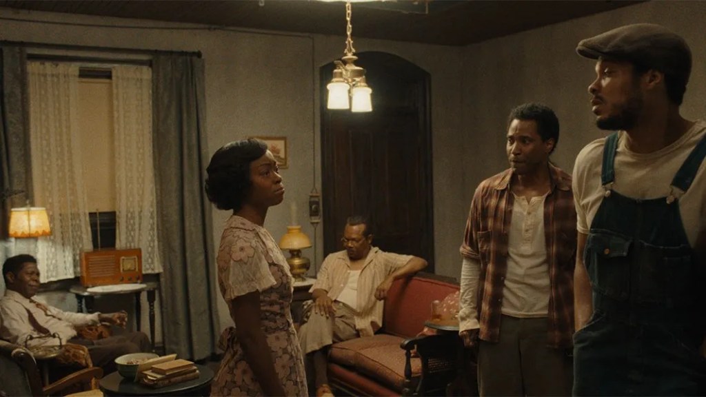 Porém, em um elenco com a presença de atores veteranos consagrados como Samuel L. Jackson (As Marvels, Invasão Secreta) e Michael Botts (Rustin) que estão muito bem, além de boas atuações de Ray Fisher (Rebel Moon: Parte 1 e Parte 2) e Corey Hawkins (A Cor Púrpura), nenhuma atuação se compara a de Danielle Deadwyler (Till – Busca Por Justiça), sua Berniece é uma força da natureza, trazendo as dores das mulheres pretas de uma forma cativante e tocante que eleva o texto de uma forma excepcional. Deadwyler cresce como atriz a cada novo trabalho e o texto adaptado de August Wilson parece servir como uma luva para seu talento, devorando cada cena que entra com destaque a que contracena com John David Washington sobre o papel dos pais no legado da família.